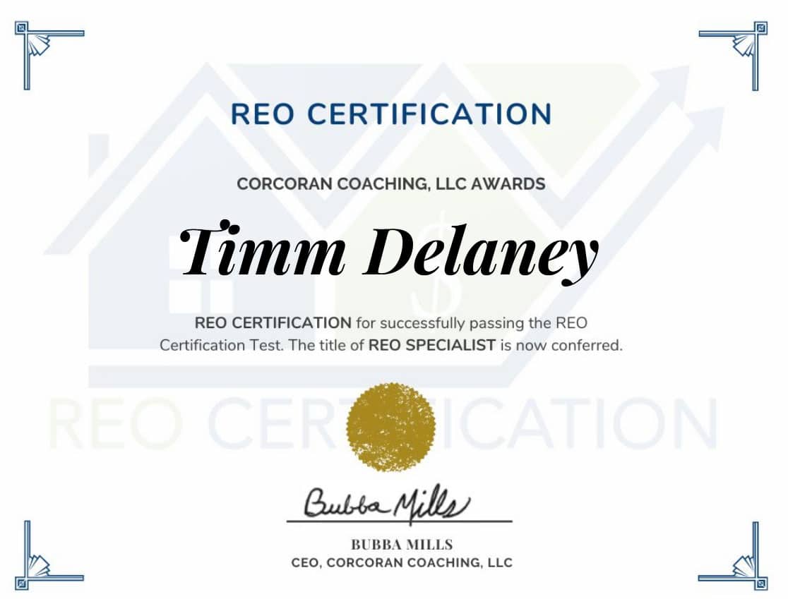 Timm Delaney Earns REO Specialist Certification – A Testament to Real Estate Excellence